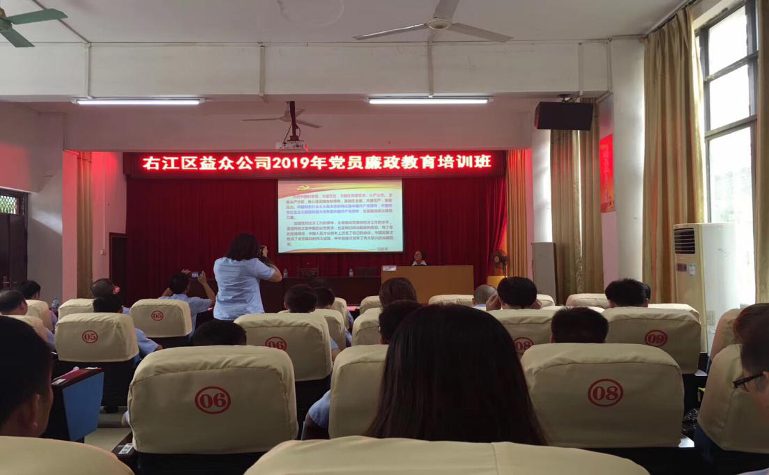 為積極響應黨中央關于黨風廉政建設的號召,強化公司員工廉潔從業(yè)意識,營造良好的企業(yè)氛圍。7月19日,益眾投資公司組織部門負責人、黨員職工、業(yè)務骨干等一行共55人在右江區(qū)委黨校進行黨員廉政教育培訓。