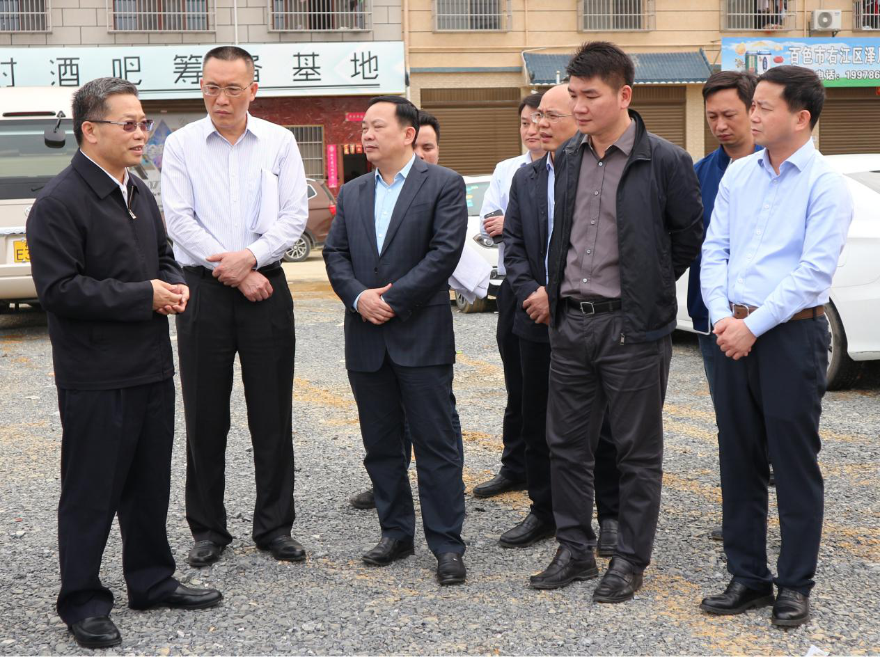 ??? 自治區(qū)政協(xié)副主席、百色市委書記、百色市人大常委會(huì)主任彭曉春一行到公司負(fù)責(zé)的棚戶區(qū)改造項(xiàng)目檢查工作進(jìn)展情況,百色市委秘書長(zhǎng)藍(lán)樹東、右江區(qū)委書記黃永才、公司經(jīng)營(yíng)管理指導(dǎo)工作小組組長(zhǎng)李勇春等領(lǐng)導(dǎo)陪同。?(通訊員:金彥彤)