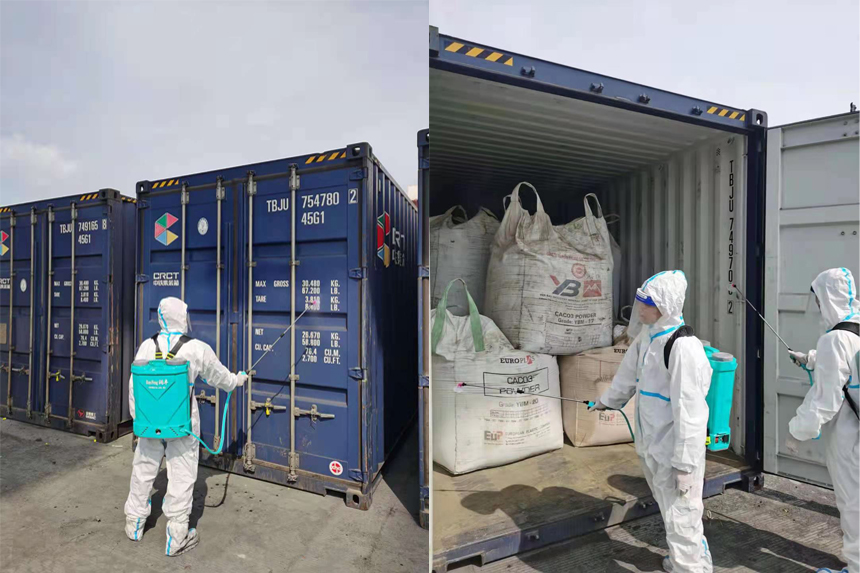 圖為貨物到達(dá)國(guó)際貿(mào)易港及清關(guān)消殺
