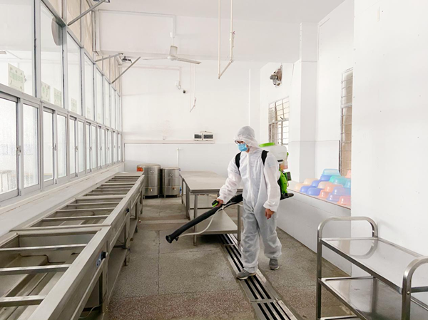 ??? 為筑牢疫情防控校園防線,打造真正安全、衛(wèi)生的校園環(huán)境,益眾托管濱江校區(qū)在百色協(xié)和醫(yī)院大力支持下,全面開展消毒防疫工作,對托管樓宿舍、廚房、食堂、樓道、衛(wèi)生間等區(qū)域進(jìn)行全面消毒,為師生構(gòu)筑安全屏障,以一個安全、衛(wèi)生的校區(qū)面貌靜候孩子們的歸來。(通訊員:黃桂珍)