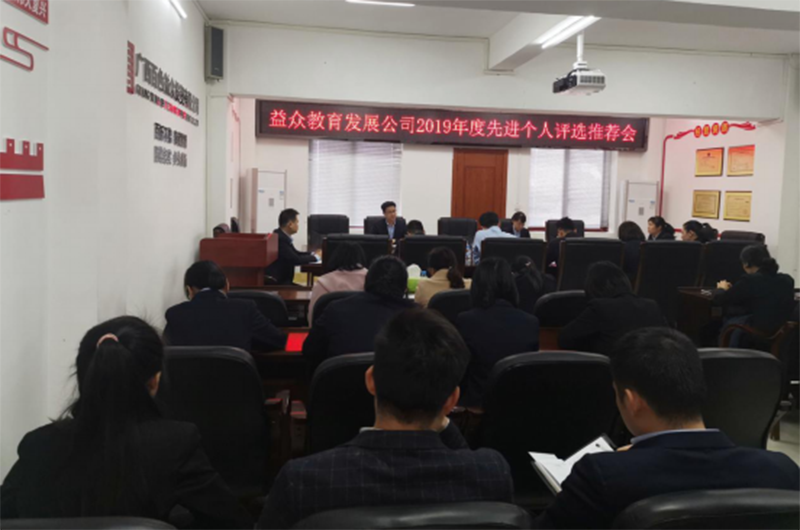 為進(jìn)一步提高干部職工的凝聚力和戰(zhàn)斗力,樹立典型,發(fā)揮先鋒模范作用,根據(jù)公司總部的《2019年度先進(jìn)集體、先進(jìn)個(gè)人評選表彰工作方案》文件要求,益眾教育公司組織開展2019年度評先評優(yōu)工作,公司本部、下屬公司全體管理人員參會(huì)。評先評優(yōu)工作本著公開、公平、公正的原則,以實(shí)事求是的態(tài)度,通過不記名投票方式進(jìn)行評選,選拔出一批政治素質(zhì)高、崗位技能強(qiáng)、工作完成滿意度佳、群眾評價(jià)好的先進(jìn)員工。