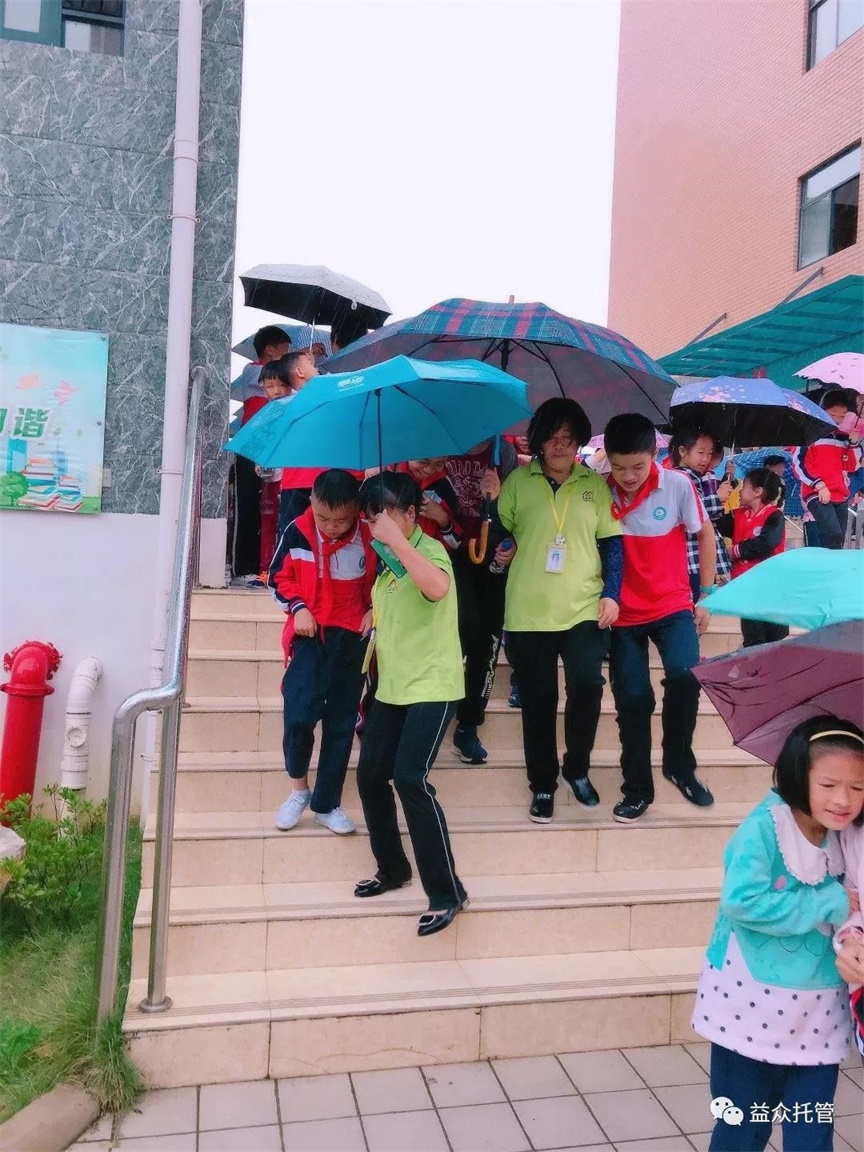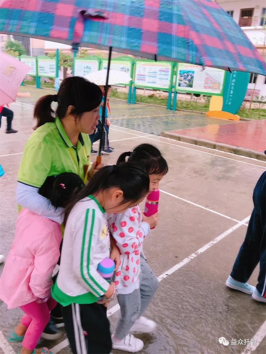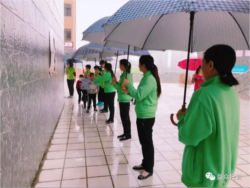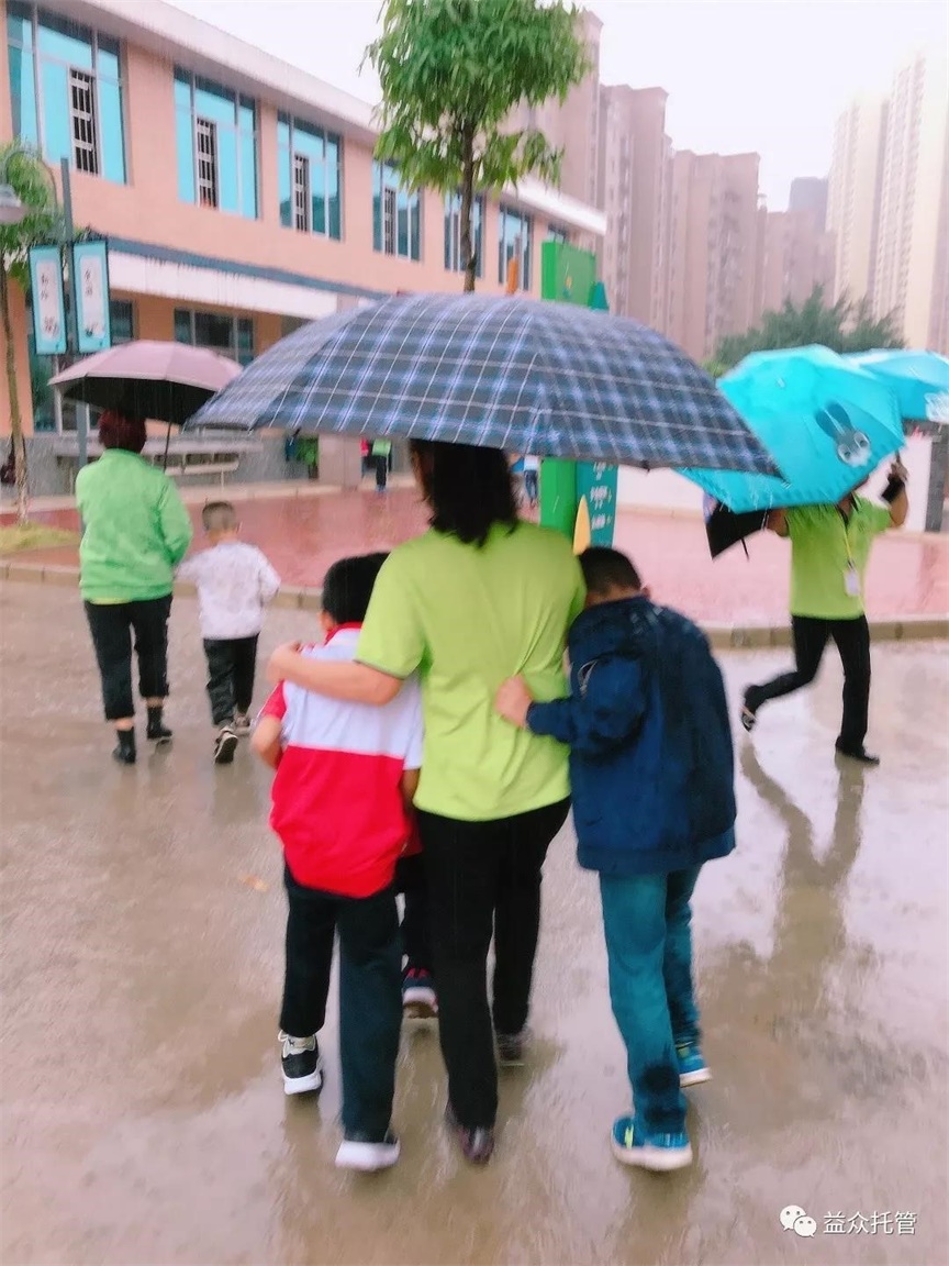 益眾托管公司托管老師雨天為孩子撐開愛的雨傘