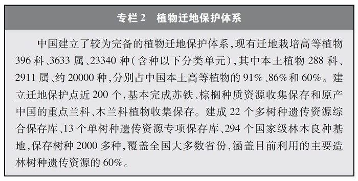 中國持續(xù)加大遷地保護(hù)力度,系統(tǒng)實(shí)施瀕危物種拯救工程,生物遺傳資源的收集保存水平顯著提高,遷地保護(hù)體系日趨完善,成為就地保護(hù)的有效補(bǔ)充,多種瀕危野生動(dòng)植物得到保護(hù)和恢復(fù)。
