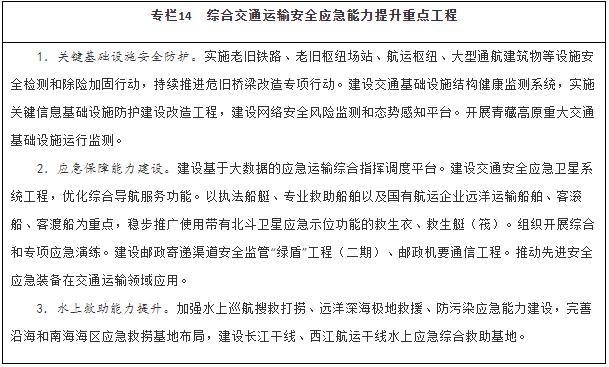 安全保障更加可靠。交通設(shè)施耐久可靠、運行安全可控、防范措施到位,安全設(shè)施完好率持續(xù)提高??绮块T、跨領(lǐng)域的安全風(fēng)險防控體系和應(yīng)急救援體系進(jìn)一步健全,重特大事故發(fā)生率進(jìn)一步降低。主要通道運輸安全和糧食、能源、礦石等物資運輸安全更有保障,國際物流供應(yīng)鏈安全保障能力持續(xù)提升。