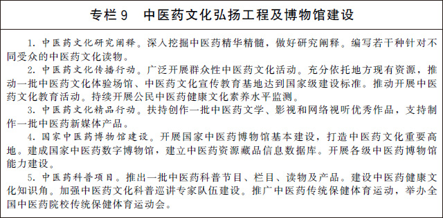 2.發(fā)展中醫(yī)藥博物館事業(yè)。開(kāi)展國(guó)家中醫(yī)藥博物館基本建設(shè),建成國(guó)家中醫(yī)藥數(shù)字博物館。促進(jìn)中醫(yī)藥博物館體系建設(shè),強(qiáng)化各級(jí)各類中醫(yī)藥博物館收藏研究、社會(huì)教育、展覽策劃和文化服務(wù)功能,加強(qiáng)數(shù)字化建設(shè),組織內(nèi)容豐富的中醫(yī)藥專題展覽。